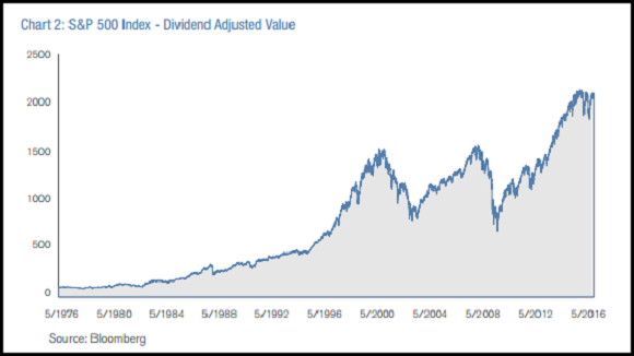 For stocks, the range of possible outcomes is much wider. Nevertheless, over the four decades to the end of May 2016, the S&P 500 produced an annualized total return (with dividends reinvested) of 11.1%, which is 1.1 percentage points over the annual average over the past 90 years -- not an insignificant difference.