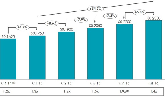 That's both because growing payouts drive long-term unit appreciation, but also because the midstream MLP business models requires at least some access to cheap equity growth capital, which is what allows the majority of distributable cash flow to be paid out to investors.