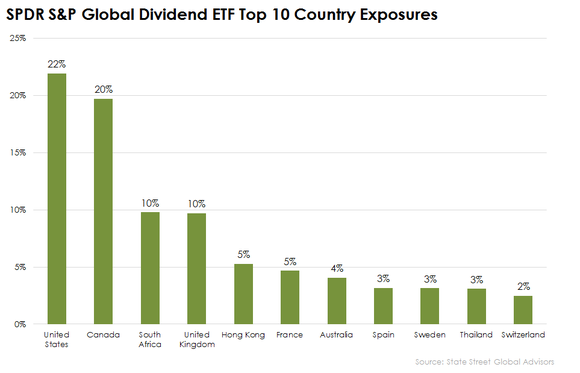 The fund tracks the S&P Global Dividend Aristocrats Index, which includes companies that have followed a "managed-dividends policy of increasing or stable dividends for at least ten consecutive years." Importantly, this breaks two classic Dividend Aristocrat rules as companies can be included even if they do not increase their dividends, and the index requires only 10 years of dividend history.
