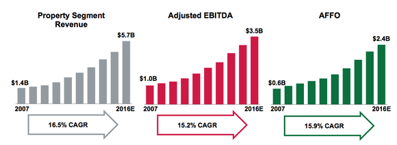 Looking ahead, American Tower looks well positioned for continuing double-digit growth for years to come. With shares currently yielding 1.7% and only trading for about 21 times full-year adjusted funds from operations (AFFO) estimates -- the REIT equivalent of earnings -- this is a great stock for growth focused investors to consider owning.