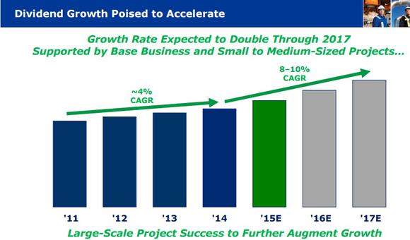 Management expects the next three years worth of dividend growth to come from the $12 billion in small to medium-sized projects it plans to put into service over the next 3.5 years.