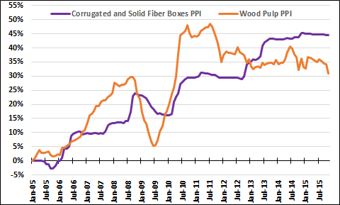 Although involvement with e-tailing has certainly been a boon to box makers, packaging remains a cyclical business: Demand softens when the economy weakens, because less is shipped so the need for boxes diminishes. It is unquestionable that e-commerce has raised the economy's base level of box consumption, and will probably raise it further, but like all retailing, it's sensitive to the economic cycle. Because it has been gaining share from traditional retailers, its sensitivity has been obscured, but it won't gain share indefinitely, and at some point its cyclicality will become fully apparent.