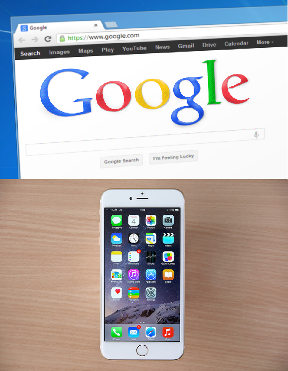 Alphabet and Apple's flagship products: Search-driven advertising and the iPhone. Created by the author based on images by Kārlis Dambrāns and Bo-Yi Wu, republished under CC BY 2.0.
