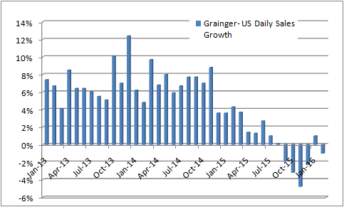 A look at Grainger's daily sales growth in U.S. stores reveals very similar sales trends.